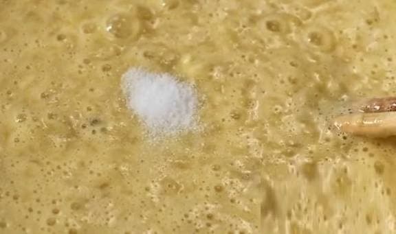 Bước 2: Đập 3 quả trứng gà vào bát, cho củ mài, 100 gram bột mì, 50 gram bột năng trộn đều để được hỗn hợp đặc sánh, thêm 2 gram muối trộn đều một lần nữa. Bạn có thể theo tỷ lệ bột mì và bột năng là 3:1. Thêm vào, đừng quên cho một chút muối ăn vào cuối để tăng hương vị.